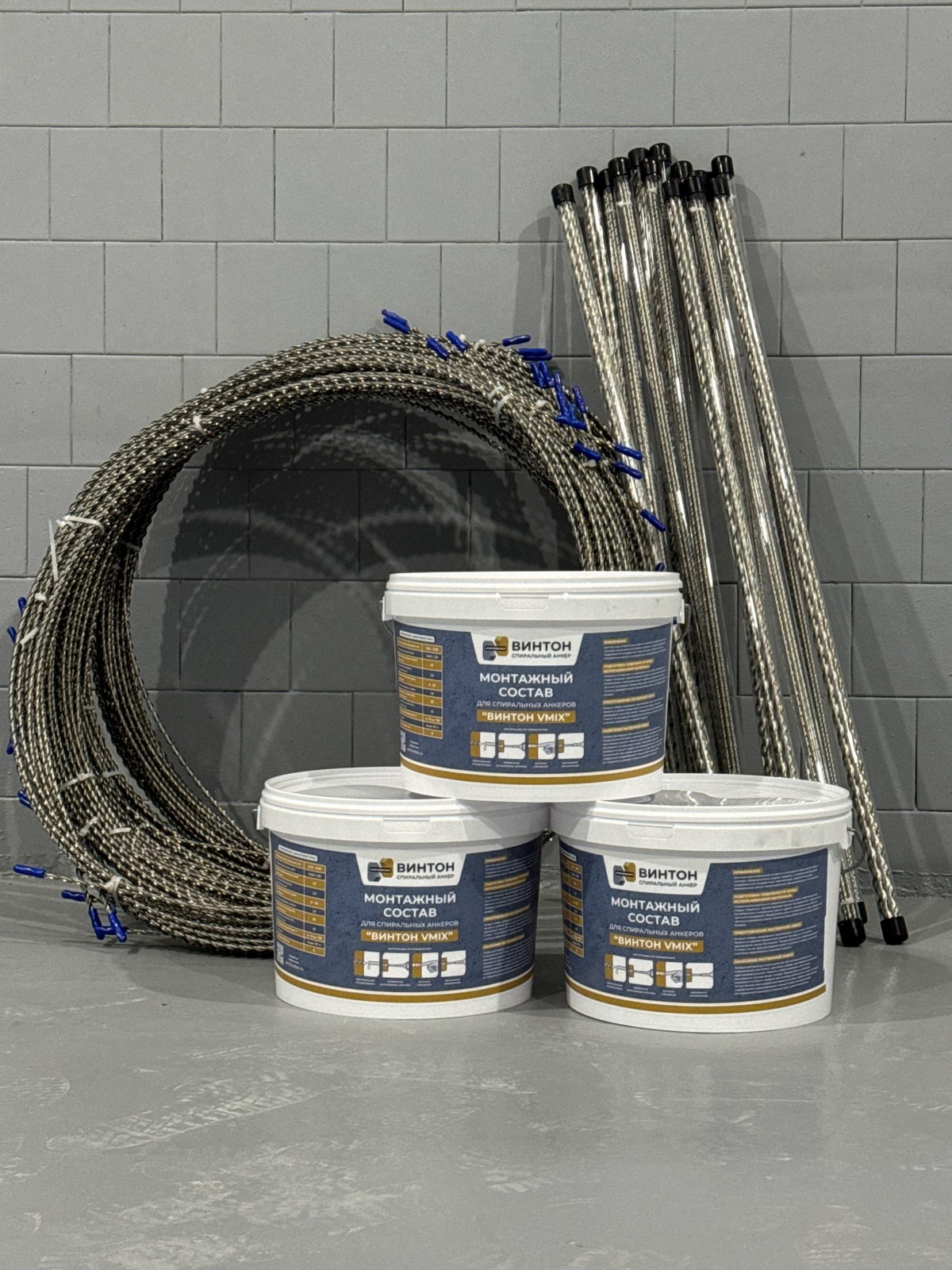 Спиральный анкер Винтон — это крепёжный элемент из нержавеющей стали AISI 304, предназначенный для ремонта и усиления бетона и кирпичной кладки. Его спиральная форма обеспечивает равномерное распределение нагрузки, значительно повышая предел прочности стен.
